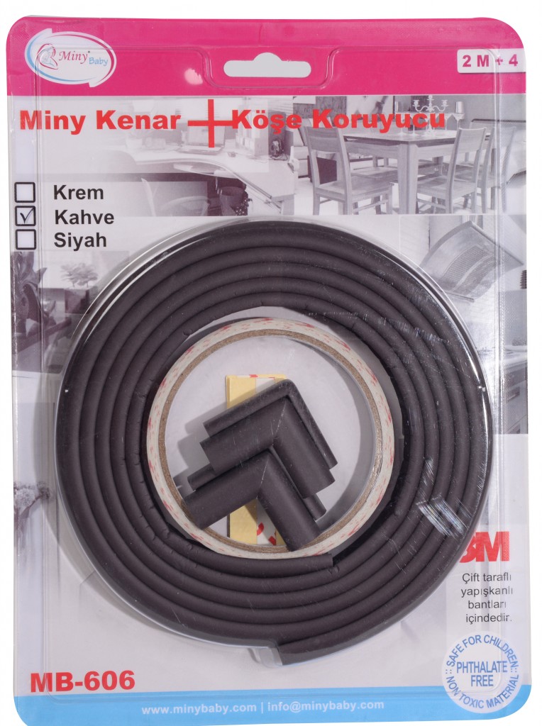 Doğal kauçuktan üretilmiş olup Fitalat- Toksik madde içermez. Miny Kenar Koruyucu düz yuvarlak veya oval şeklindeki kenarlar için kullanılabilir. Ahşap,Mermer, Cam ve diğer tüm yüzeylerde çıkarıldığında iz bırakmaz mobilya’ya zarar vermez, Kolay Temizlenebilir.